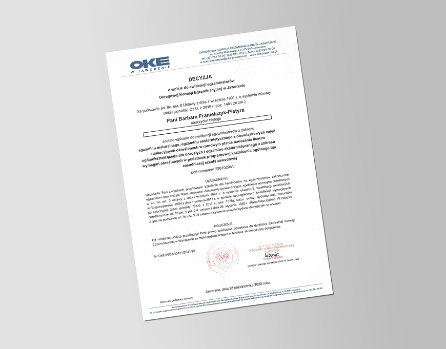 Jestem nauczycielem biologii z ponad 13-letnim doświadczeniem jako korepetytor z tego przedmiotu, jak również z chemii. Posiadam kwalifikacje do nauczania biologii i przyrody, a także uprawnienia egzaminatora maturalnego z przedmiotu biologia. Jestem doktorem nauk biologicznych, nauczycielem akademickim oraz akredytowanym tutorem. W pracy stawiam na zrozumienie tematyki, rozwój umiejętności rozwiązywania zadań przy jednoczesnym indywidualnym podejściu do ucznia.